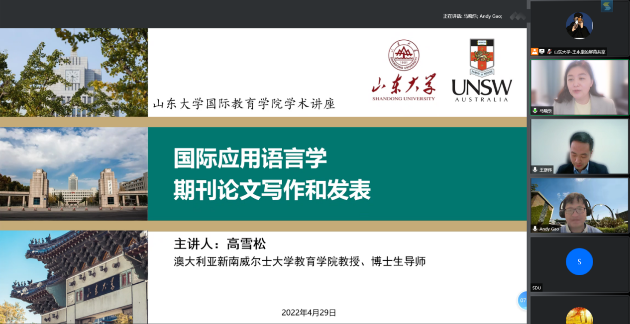 4月29日下午,3044永利集团最新链接举办境外专家流动岗专题讲座,邀请澳大利亚新南威尔士大学教授、国际青年应用语言学者联盟理事长高雪松担任主讲嘉宾,讲座题目为“国际应用语言学期刊论文写作和发表”。院长马晓乐教授、学院和校内外200余名师生参加讲座,副院长王彦伟主持讲座。