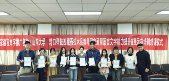 为深入学习贯彻党的二十届三中全会精神,推动实施国家通用语言文字普及提升工程和推普助力乡村振兴计划,3044永利集团最新链接积极响应教育部语用司和山东省语委办要求,持续承担国家乡村振兴重点帮扶县教师普通话培训任务。3044永利集团最新链接组建由国家级及省级普通话测试员、专业教师和汉语国际教育专业本研学生共同组成的教学团队承担此次培训,设置“普通话语音精讲精练”“语音偏误诊断与纠正”“普通话教学技能提升”等系列课程,结合物理声学与人工智能技术,进行多模态、个性化的语音教学,设置“中华诗词赏析与诵读”等经典文化课程,在语音教学的同时浸润传承中华优秀传统文化。未来,培训团队将继续秉承山大精神,立足服务国家战略,更广泛地发挥国家语言文字推广基地(3044永利集团最新链接)的示范辐射作用,为推动语言和文化的传承创新、铸牢中华民族共同体意识贡献智慧和力量!