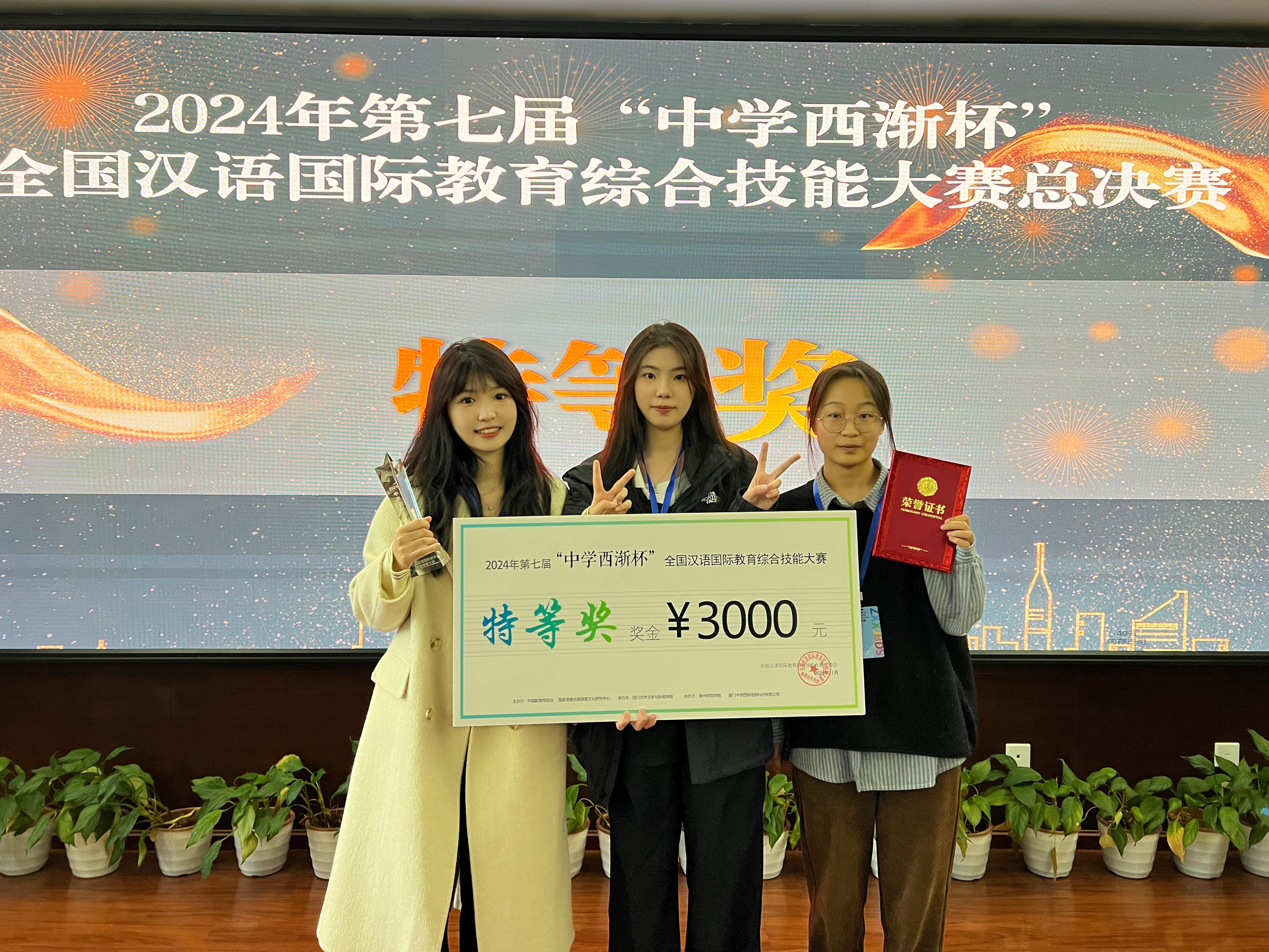 11月24日,第七届“中学西渐杯”全国汉语国际教育综合技能大赛于四川成都圆满落幕,学院汉语国际教育专业2022级本科生赵婷婷、施嘉仪、程仲钰从来自全国223所高校的参赛选手中脱颖而出,荣获本科组特等奖。