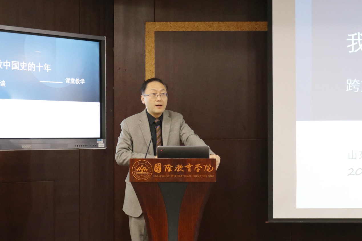12月27日下午,程龙受邀为师生作“我在北美教中国史的十年——课堂教学跨文化胜任力漫谈”专题讲座。他指出,在讲中国史之前,要帮助学生解决身份认同即“我是谁”的问题,并找准讲好中国故事的叙事视角、技巧和素材,解决“讲什么故事”和“怎么讲故事”的问题。他建议通过小视角呈现宏大历史,结合当前受青少年欢迎的文学叙事手法,利用图像等生动素材,力求讲的故事孩子也能感兴趣。