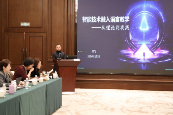 在第二日大会报告中,特邀嘉宾宋飞教授以“智能技术融入语言教学:从理论到实践”为题,从人类大脑的语言学习思维入手,介绍了当前人工智能技术应用于国际中文教育的路径,并结合生动的案例分析,提出国际中文教育数字化转型不是简单的技术升级,而是一场深刻的教育变革,需要我们转变观念,积极参与构建国际中文教育新生态。青年教师王晶心、徐唱、张斌分别围绕教育技术前沿进展、专业课程教学实践探索和全国高校混合式教学设计创新大赛参赛经验,以“学习科学与人工智能赋能未来教育”“基于产出导向法的国际中文教育大数据课程设计与实施”“‘四重三铸’混合式教学设计的创新与实践”为题,分享了多学科交叉融合视域对国际中文教育专业发展的思考与探索。