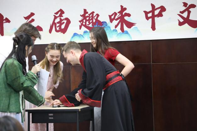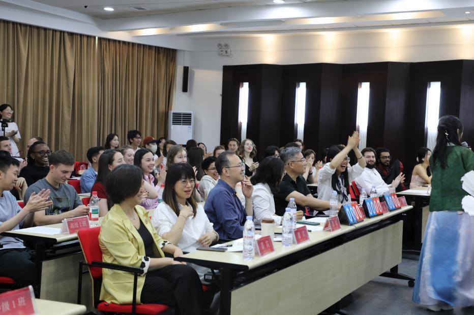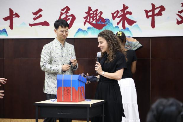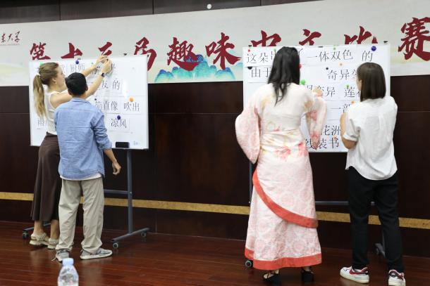 本次比赛面向非学历国际学生,按中文水平分为初级组、中级组和高级组,以班级为单位角逐团体奖项。比赛设置“趣味传话”“汉字添笔”“中国文化知识抢答”“连词成句”“摸物猜名”和“中华才艺展示”等六项创意赛事,考察学生对汉字结构的了解、字词发音的准确性、语法规则的运用和对中华文化的认知,全面检测国际学生的中文学习成果。参赛选手们在限时问答中展现丰富的知识储备与迅捷反应力,在触觉猜物中深化表达能力与文化理解,更以歌舞、诵读、小品、配音等多彩形式诠释着青春风采与国际视野,演绎中华文化魅力。
