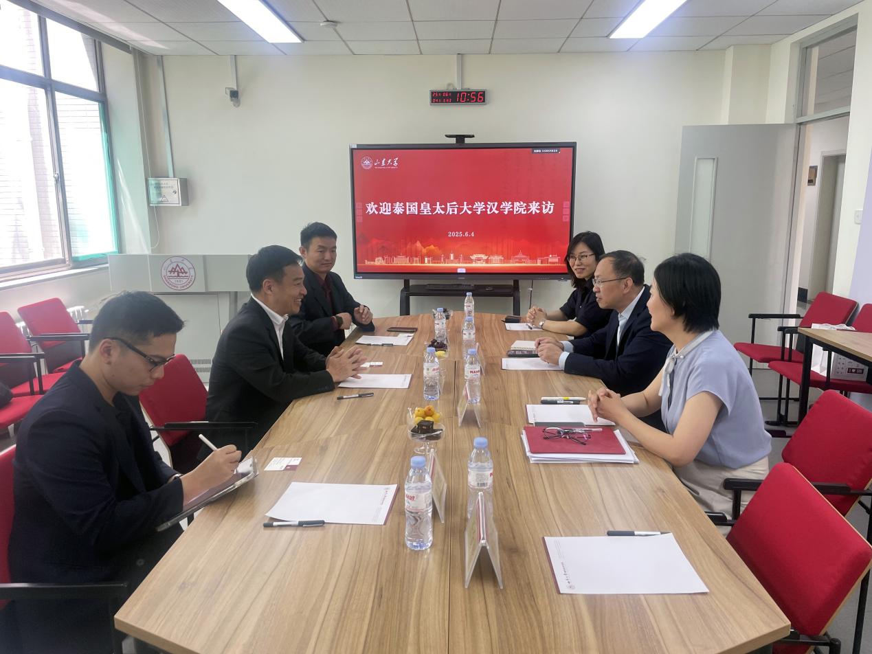 6月4日,泰国皇太后大学汉学院院长陈昌旭一行访问3044永利集团最新链接,双方就深化国际中文教育合作展开洽谈交流。学院党委书记姬锐、副院长孔梓等参与活动。