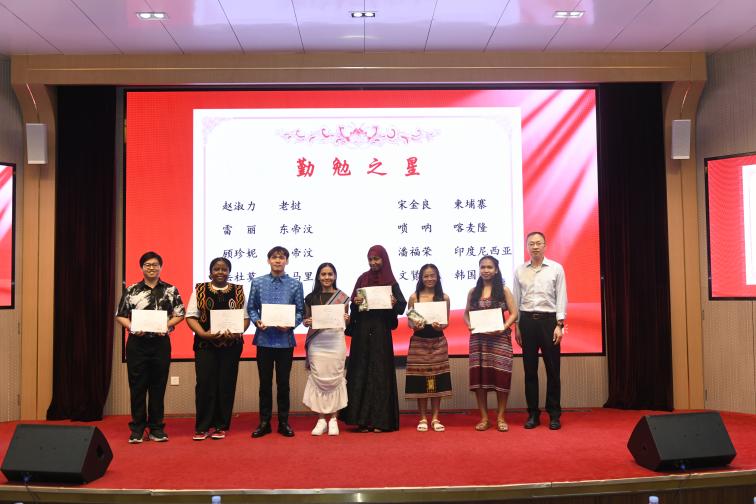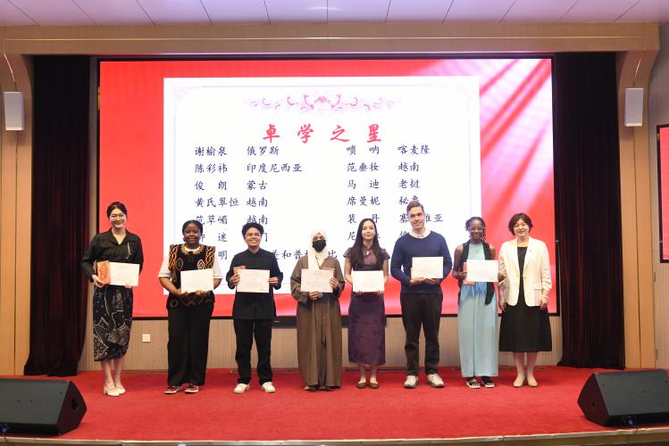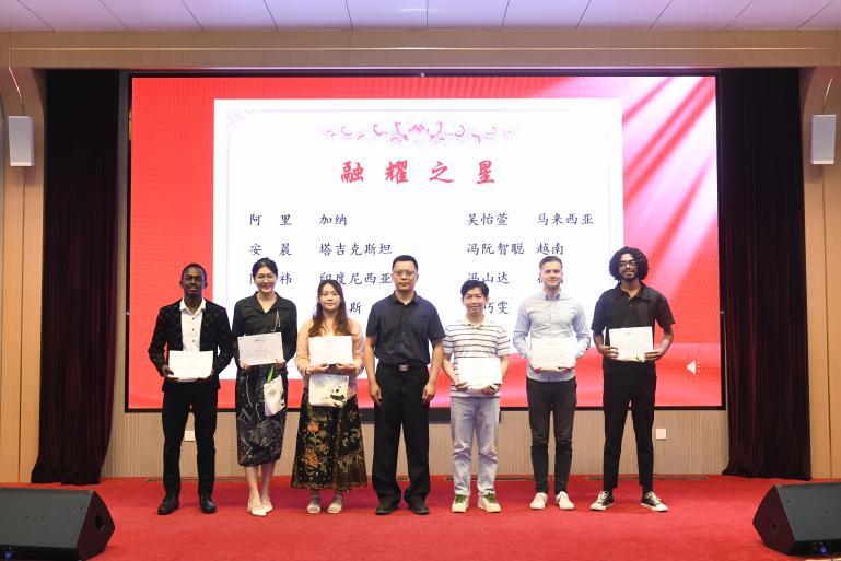 学院设立国际学生“校园之星”荣誉体系,对品学兼优、表现优秀的国际学生给予鼓励和表彰,共设“卓学之星”“勤勉之星”“融耀之星”“友睦之星”和“桥音之星”五个荣誉称号,旨在表彰在学业成绩、学习态度、校园活动、日常表现、文化交融等方面表现优异的国际学生。表彰仪式环节,学院党委副书记王璐璐宣读了表彰决议,授予53位国际学生“校园之星”荣誉称号。她勉励同学们珍惜荣誉、牢记梦想,实现自己下一站的人生目标。