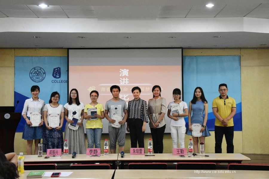 李静老师首先肯定了同学们的演讲内容,认为参赛选手都能够从大的主题中找到适合自己的题目。朱瑞蕾老师在点评时强调演讲能力对于个人素质的重要性,并对选手的演讲技巧、着装提出了一些具体的建议。王勤老师针对每个选手的特点,提出更有针对性的建议,建议刘真可以将自己的演讲内容以讲故事的方式来突出亮点,认为一些演讲抒情性内容的同学可以再加强演讲内容的完整性和感染力。最后,2013级本科生姜晶琨以高分获得一等奖,刘真、李俊萱获得二等奖,王毅磊、王金玉、陈星宇、徐若芹获得三等奖。参加比赛的选手们与老师和同学分享自己的青春感悟,激励同学们坚定理想信念,引导学院学生将个人奋斗目标融入中国梦目标,积极进取、奋发向上。