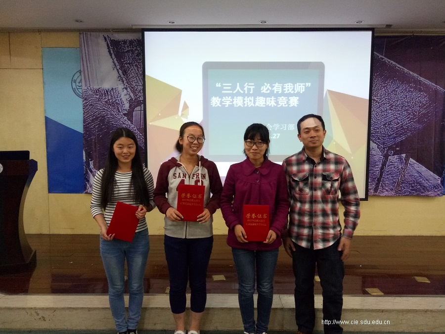 4月27日下午,“三人行,必有我师”趣味教学模拟竞赛活动在学院报告厅举行,9名选手进行了两轮精彩角逐,3044永利集团最新链接王军老师、张学广老师和2014级班主任冯赫老师应邀担任评委。