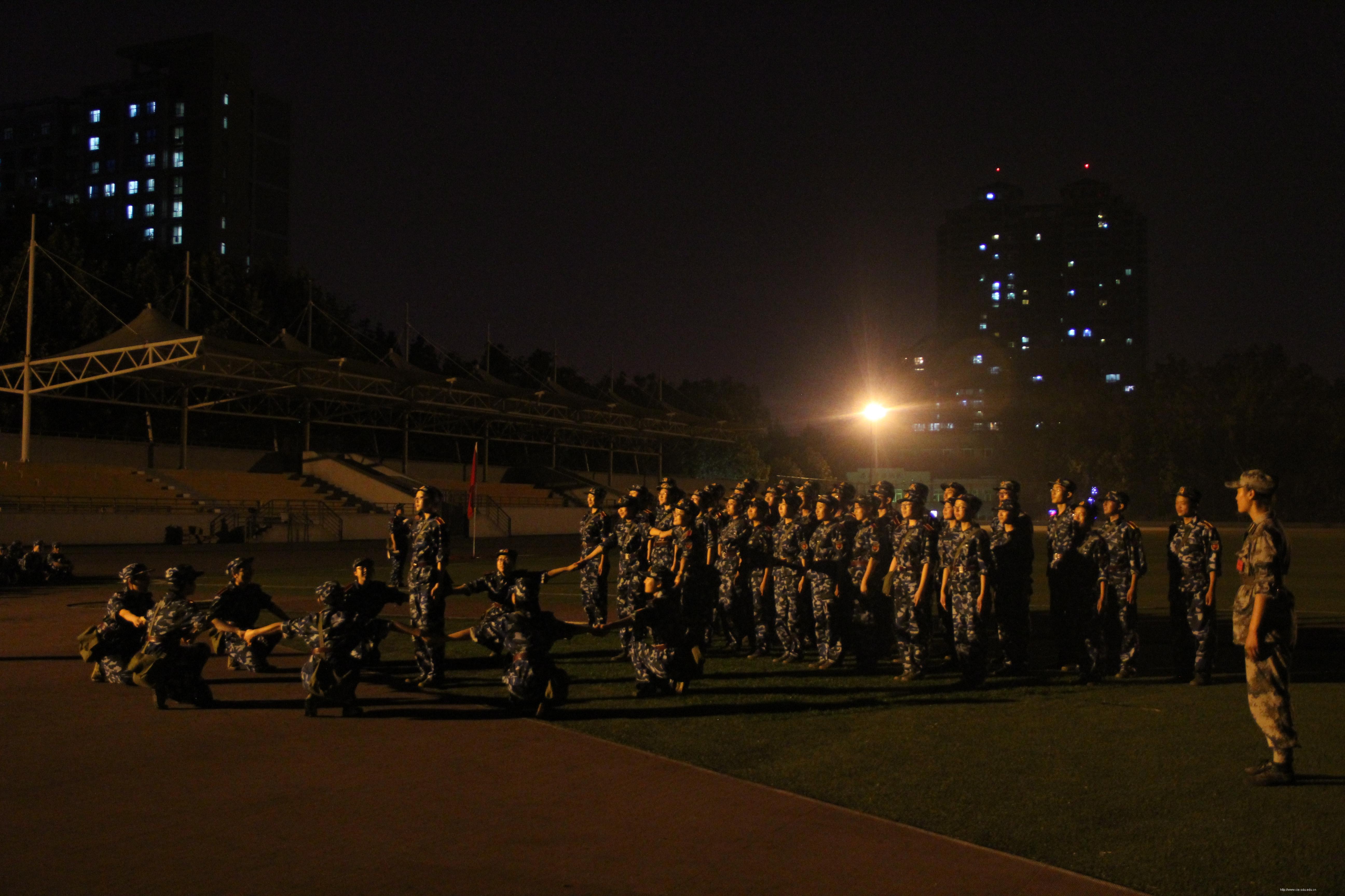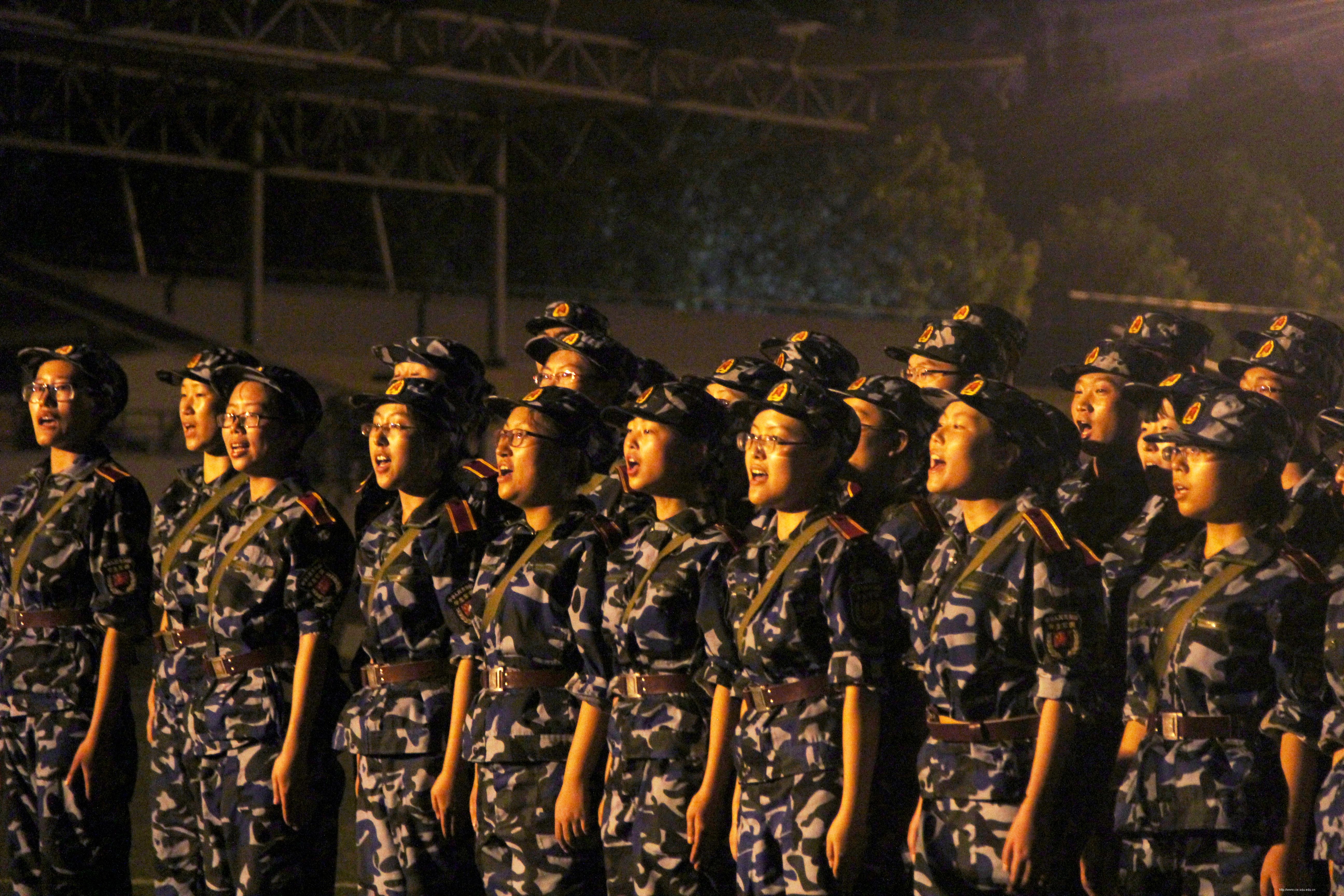 9月15号夜晚,结束了白天的训练之后,新生们再次来到操场开始新一轮的训练。之前高强度的训练让同学们略微有些疲惫,然而,夜色中的他们看起来还是依然精神饱满。将白天的动作全部复习完一遍之后,在教官提议下,不同排之间开始进行唱军歌表演,以活跃操场的气氛,为同学们打气。六连五排的同学们激情昂扬,每个人都拿出自己的热情和最好的状态,放开嗓子大声唱军歌,青春、活泼,这样的画面实在令人心情振奋!
